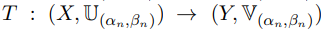 DEFINITION 10. A map T : X −→ Y between b(αn,βn)-hypermetric spaces and
