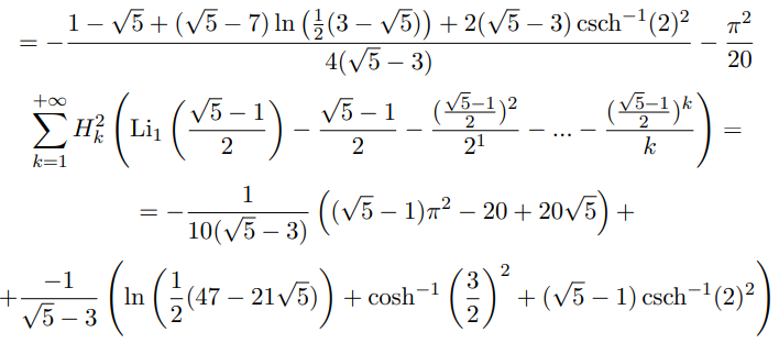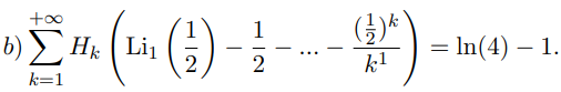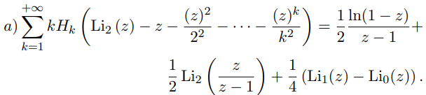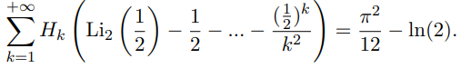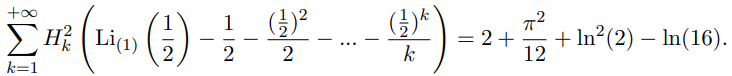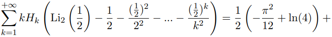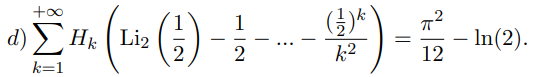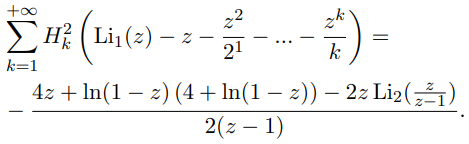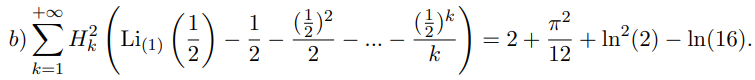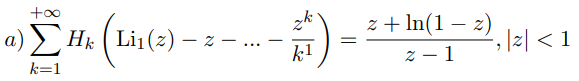 2. Further questions can be asked regarding the sums with harmonic numbers of an arbitrary order as to, whether it is possible to find more of them of the form for some fixed k.