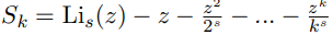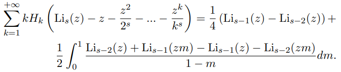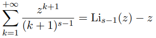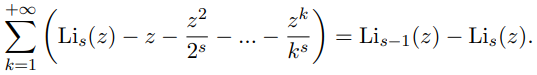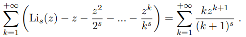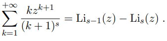 Theorem 3. Let Lis(z) denote the polylogarithmic function. Then the following equality holds for |z| < 1