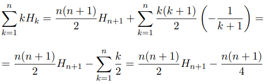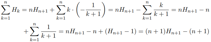 Proof. We will prove it using the Abel’s summation (finite version). By choosing ak = k, bk = Hk we get