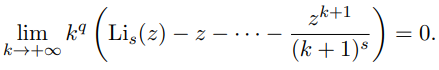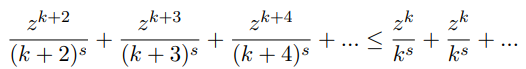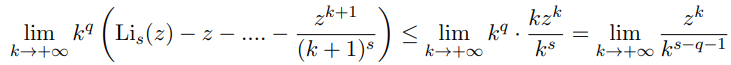 and this will go to zero independently of s − q − 1 because |z| < 1 and zk goes faster to zero than any power of the form ks−q−1.