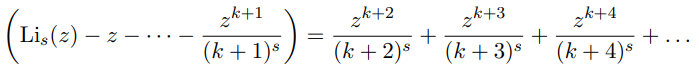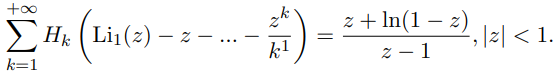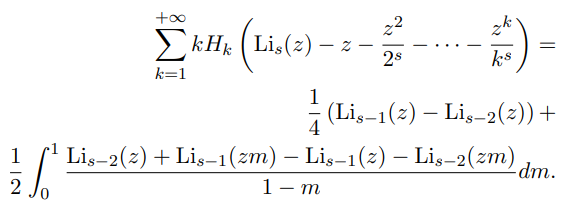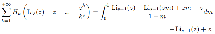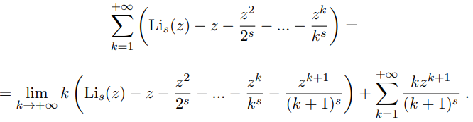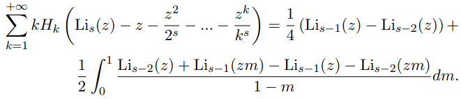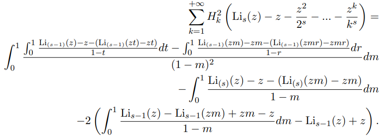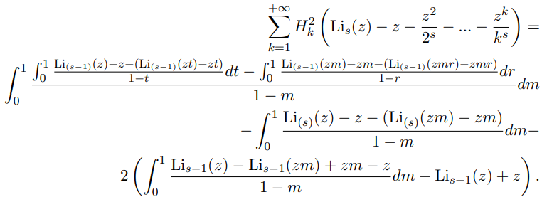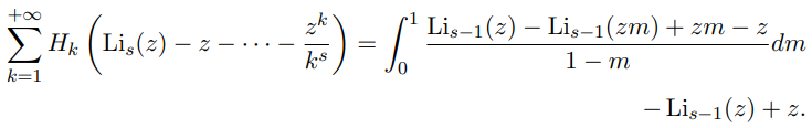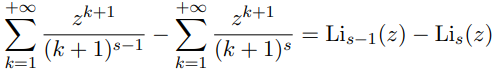 Theorem 2. Let Lis(z) denote the polylogarithmic function. Then the following equality holds for |z| < 1