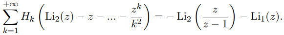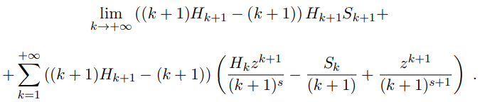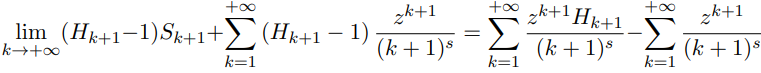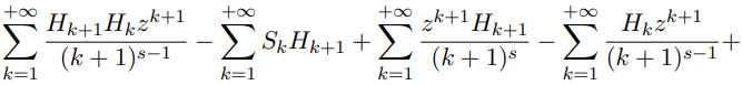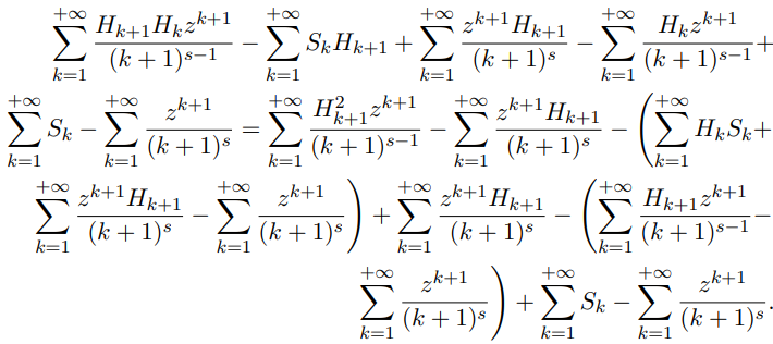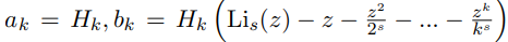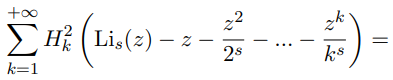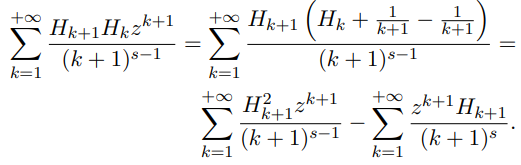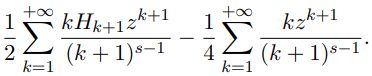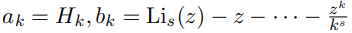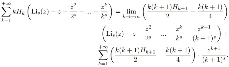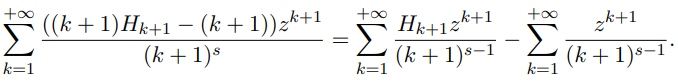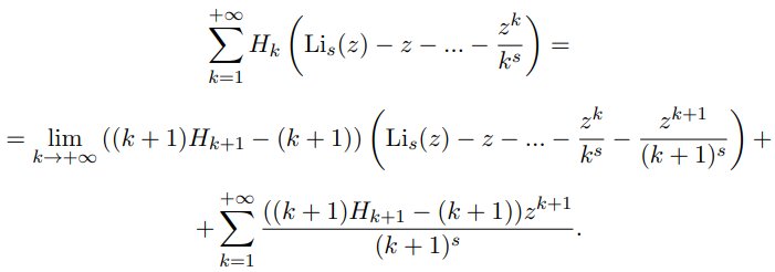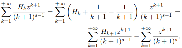 Proof. Using the Abel’s summation with ak = kHk and bk = Lis(z) − − ... −