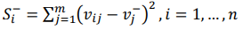 Step 4 Determination of alternative distances from the ideal solution. In this step, using the following relations: