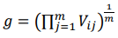 where 𝑔𝑖 represents the border approximate area for the criterion 𝐶𝑖, 𝑣𝑖𝑗 represents the elements of the aggravated matrix (𝑉), 𝑛 represents the number of criteria, and 𝑚 represents the number of alternatives.