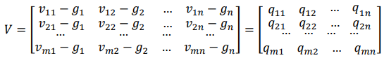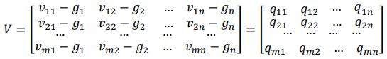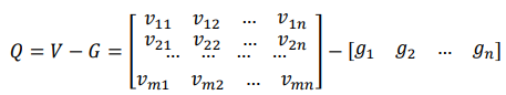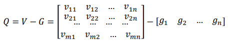 as a reminder of the aggravated matrix (𝑉) elements, and the values from the border approximate area matrix (𝐺). By the application of the expression: