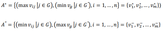 The best alternatives are those which have the biggest 𝑣𝑔 relative to the criteria which are maximized and the smallest 𝑣𝑔 relative to the criteria which are minimized. 𝐴* indicates the best alternative (the ideal solution), and, using the same logic, 𝐴′′ indicates the negative ideal solution.
