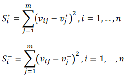 Step 3 Determining the ideal solutions. The ideal solution 𝐴* and the negative ideal solution 𝐴− are determined by applying the expressions: