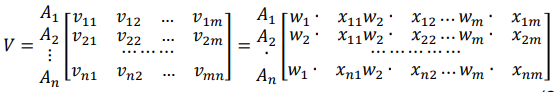 and the values (𝑤1,𝑤2...,𝑤𝑚) represent the weight values of the criteria. The weight of the criteria must be in compliance with the condition .