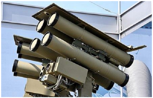 The third generation of ATGMs completely employs an automated guidance system. In Western literature, this system is designated as a “Fire and Forget” system. The operator selects a target and after launching the automatic system tracks the target and guides the missile to the target. The typical example of the third generation of ATGMs is the 9M133M Kornet-M. The automated system conducts the target tracking and focuses the laser beam to a target, which is used to guide a missile. This ATGM presents an improved version of the second generation of the 9M133 ATGM. The launching platform is capable of tracking two targets simultaneously. Besides anti-tank engagement, the system is intended for low altitude anti-aircraft defense (e.g. against unmanned aerial vehicles). The 9M133M Kornet-M ATGM is presented in Figure 3. The photo represents a Kornet D variant which is capable of carrying 8 missiles (with additional 8 in reserve) on the GAZ 2975 all-terrain vehicle.