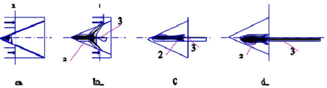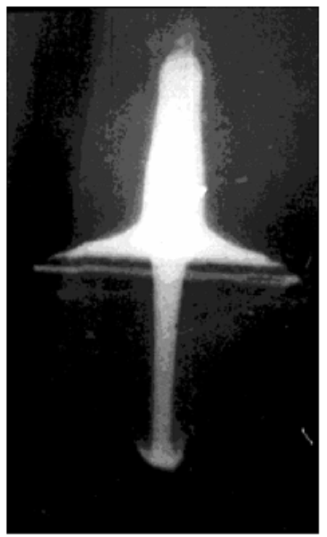 The coating of the cumulative cavity also increases penetration capability. For the coating, the most used metal is copper, but steel can also be used as well as sintered metals. Figure 6 shows the formation of a cumulative beam while a cumulative beam formation radiograph is presented in Figure 7.