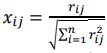 The elements of the normalized matrix 𝑁 are determined by the expression: