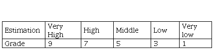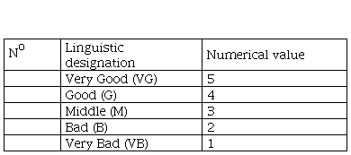 Consider that the criteria К5, К6 and К7 are represented by quality grades; quantification by quality grades will be performed by the application of the scale presented in Table 2.