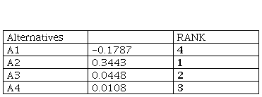 Based on the obtained results, we can conclude that the alternative 𝐴2 is first ranked, i.e. the alternatives are ranked as follows: 𝐴2 → 𝐴3 → 𝐴4 → 𝐴1.
