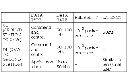 CNPC is of low data rate, for example in the order of 60-100 kb/s for both downlink (DL) and uplink (UP) directions. On the other hand, reliability of less than 10-3 packet error rate and latency of less than 50 ms are required (Table 2). The communication requirements of CNPC links are similar for different types of UAVs due to their common safety - those for payload data are highly application-dependent. Compared to CNPC, UAV payload communication is characterized by much higher data requirements.