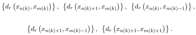 Lemma 2. (Kadelburg & Radenović, 2014a), (Kadelburg & Radenović, 2014b) Let (X, dr) be a rectangular metric space and let {xn} be a sequence in it with distinct elements (xn xm for n m). Suppose that dr (xn, xn+1) and dr (xn, xn+2) tend to 0 as n → +∞ and that {xn} is not a Cauchy sequence. Then there exists ε > 0 and two sequences {m (k)} and {n (k)} of positive integers such that n (k) > m (k) > k and the following sequences tend to ε as k → +∞ :