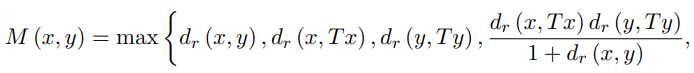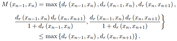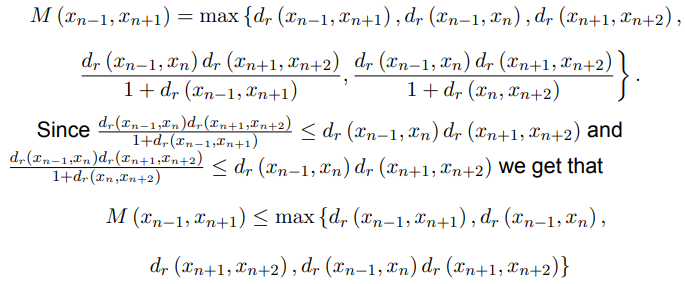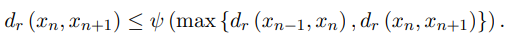 If max {dr(xn−1,xn), dr(xn,xn+1)} = dr(xn,xn+1), we get a contradiction. Indeed, (4) implies