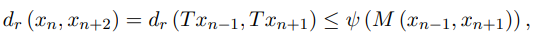 Further, we will also show that limn→+∞dr(xn,xn+2) = 0. Firstly, we have that α(xn−1, xn) ≥ 1, i.e., α (xn−1, xn+1) ≥ 1, because T is a triangular α−admissible mapping. Therefore,