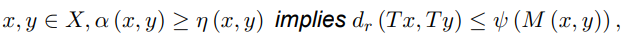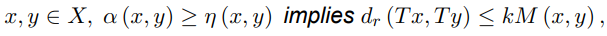 1. there exists x0 ∈ X such that α (x0, Tx0) ≥ η (x0, Tx0),