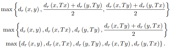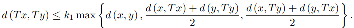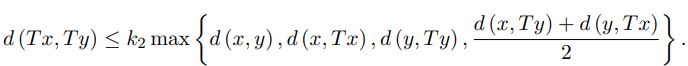 - Ćirić 2: Ćirić’s generalized contraction of second order: there exists k2 ∈ [0, 1) such that for all x, y ∈ X holds: