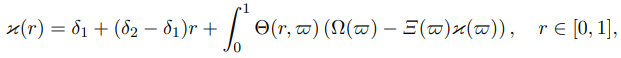 Consider a diffusing substance placed in an absorbing medium between parallel walls such that δ1, δ2 are the stipulated concentrations at walls. Moreover, let Ω(r) be the given source density and Ξ(r) be the known absorption coefficient. Then the concentration of the substance under the aforementioned hypothesis governs the following boundary value problem