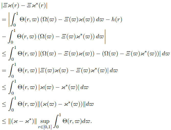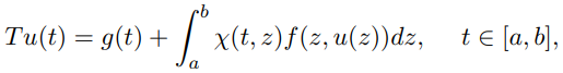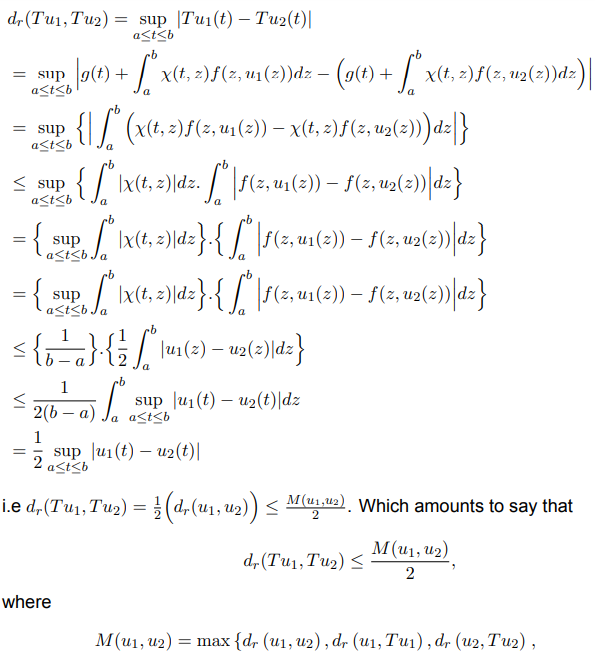 Thus, all the hypotheses Theorem 2 are satisfied and we conclude that T has a unique fixed point x* in X, which amounts to say that integral equation (4) has a unique solution which belongs to X = C[a, b].