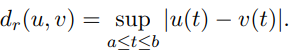 Let X be the set C[a, b] of real continuous functions defined on [a, b] and let dr : X × X → [0, ∞) be equipped with the metric defined by