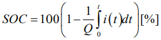 And the battery charge status (State of Charge - SOC%) is calculated from the following equation: