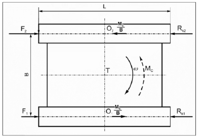 where: f – the rolling resistance coefficient (adopted value f = 0,07) and N1, N2 - the surface reaction forces.