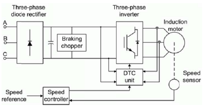 The electric motor model is a DTC Induction motor drive model from the Simulink library modified so that its input is direct current. In Figure 6, a block diagram of a drive with the DTC control is displayed (Rosić, 2016).
