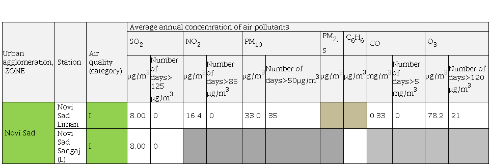 According to the Report on the environment for 2018, air quality is estimated based on available data in compliance with the regulations and recommendations from the Environment Accession Project – ENVAP. The available results from referent monitoring in national and local networks of measuring stations are used for estimating air quality in 2018. According to the Report on the air quality state for 2018, “urban agglomeration Novi Sad“ covers the territory of the city of Novi Sad (Environmental Protection Agency of the Ministry of Environmental Protection of the Republic of Serbia, 2019a, p.12).