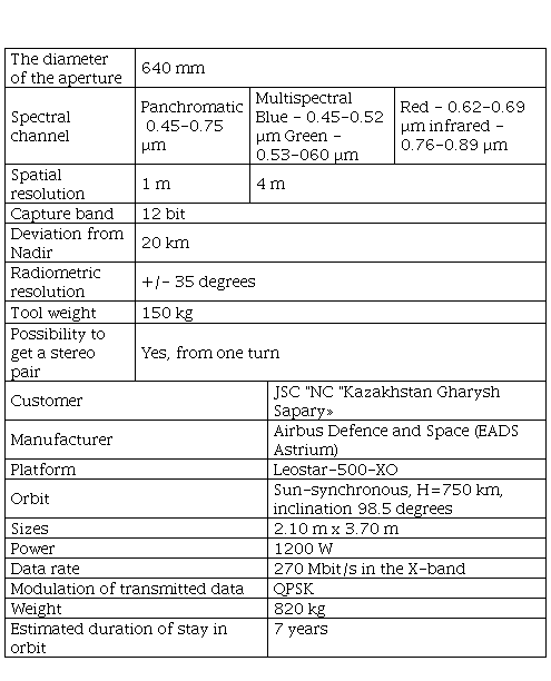 On April 30, 2014, the KazEOSat-1 satellite was launched into orbit from the European Space Agency's Kourou spaceport in French Guiana. The device, which has an almost record spatial resolution of 1 meter per pixel for satellites of this level, was developed for our country by the French aerospace concern Airbus Defense and Space (PAPA, 2007), which was called EADS Astrium before the rebranding.