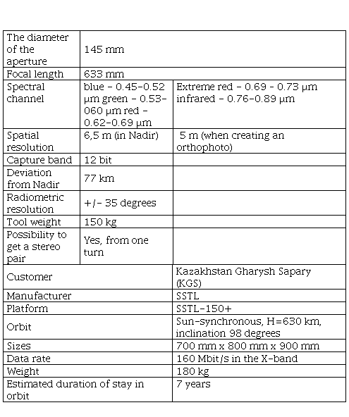 Three day and three night sessions are held with it in the radio visibility zone. One communication session lasts 10-12 minutes. During this time, a package of program commands is transmitted to the satellite, and the information accumulated by the device is reset. The spatial resolution of the KazEOsat-1 satellite is one meter, and the survey is performed in panchromatic and multispectral modes.