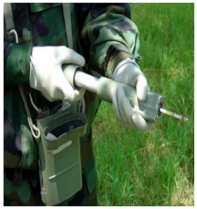 The scout for X reconnaissance controls the presence of TC with the help of SACD, and determines a possible presence and concentration of other toxic substances with a hand-held chemical detector (Figure 9).