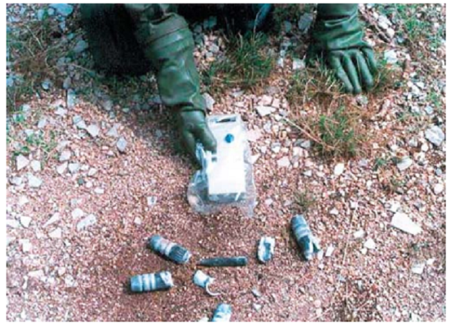 3. Air sample is taken by special devices (e.g. chemical detectors), through a cellulose-asbestos filter (the sample is the filter itself). The aerosol sample is taken as soon as possible and as close as possible to the place of explosion, and it can be taken later in the period of up to 2 weeks from the moment of strike.