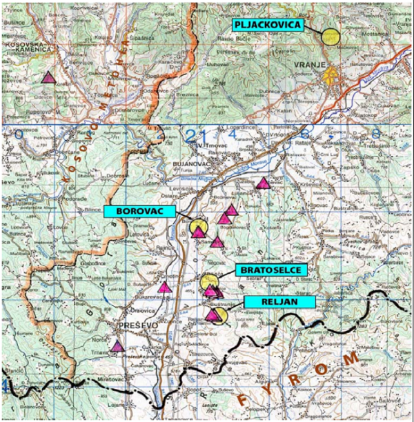 In the introduction, it was mentioned that the territory of the Republic of Serbia (without AP KiM) was targeted with DUA at 4 locations, namely: Pljačkovica (near Vranje), Borovac (near Bujanovac), Bratoselce, and Reljan (near Preševo), Figure 2. (Inđić, 2018, p.143)