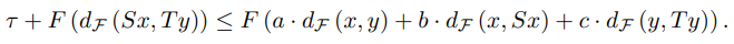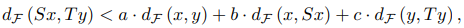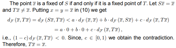 for (x, y) ∈ X × X and a, b, c ∈ [0, +∞) such that a + b + c < 1.