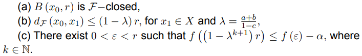 -metric space. Let T be a Reich-type F-contraction on B (x0, r) ⊆ X. Suppose that for x0 ∈ X and r > 0, the following conditions are satisfied: