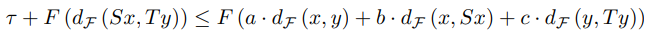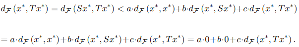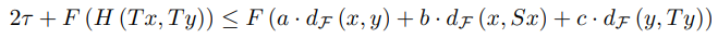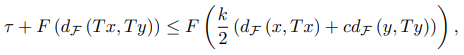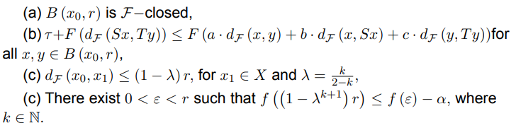 −metric and F is strictly increasing on (0, +∞). All the conditions of Theorem 11 are satisfied. Indeed, putting in equation (9) b = c = 0, we get for x y :