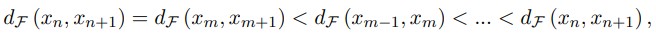 Proof. Let xn = xm for some n, m ∈ with n < m. Then xn+1 = Txn = Txm = xm+1. Further, we get
