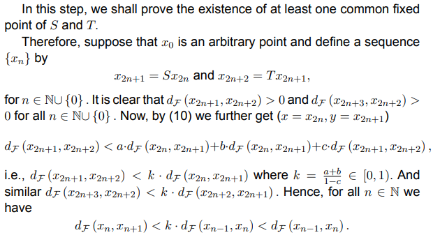 -metric space Let T : X → X be self-mapping. Suppose that for k ∈ [0, 1), there exist F ∈