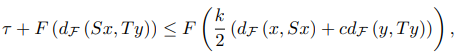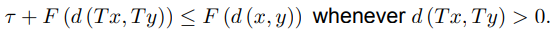 Wardowski (Wardowski, 2012) called the mapping T : X → X, defined on a metric space (X, d), an F−contraction if there exist τ > 0 and F satisfying (F1)-(F3) such that