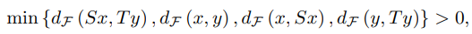 (y, Ty)} > 0 for all (x, y) ∈ X × X.