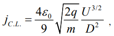 where U – the applied voltage, D – the interelectrode distance, q and m – the electron charge and mass, respectively, and 0 – the vacuum dielectric permittivity.