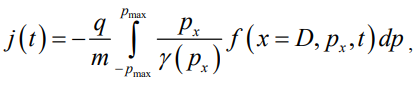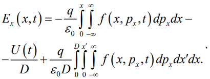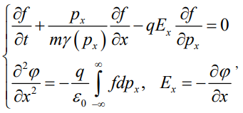 where f – the electron distribution function, x – the coordinate, t – time , - the electrostatic potential, Ex – a component of the electrostatic field, and – the relativistic factor. It should be mentioned that a planar onedimensional vacuum diode is considered here. That is done intentionally in order to get rid of probable geometrical pecularities affecting the current flow in the Child's vacuum diode.