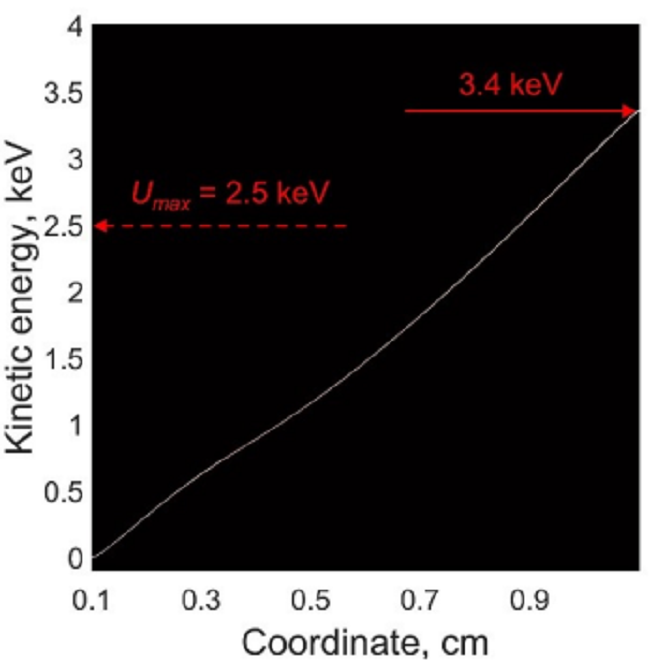 The planar diode was deliberately taken in order to demonstrate that the appearance of "anomalous" electrons is not related to the peculiarities of the diode geometry. Most often, experimental diodes are a cathode with a small radius of curvature and a relatively "flat" anode. Because of this fact, the existence of "anomalous" electrons was mistakenly associated with the fact that the electric field strength near the cathode is much stronger than the near-anode one.