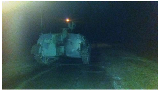Figure 9 shows the BVP M-80A with the signaling device installed and switched on while moving during a night shooting exercise.