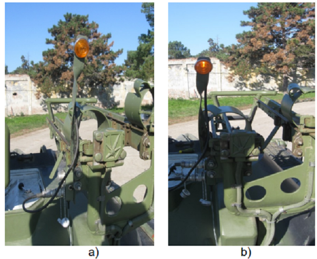 In Figure 1a, there is a signaling device on the stand and with a conductor. Figure 1a shows the situation when the signaling device is switched off, and Figure 1b when the signaling device is switched on. The signaling stand is mounted on the launcher of the anti-tank guided missile and fixed with a screw without violating the purpose of the launcher (Savezni sekretarijat za narodnu odbranu, 1988c).