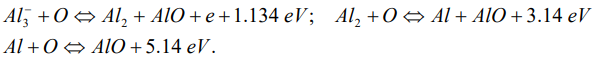 The total energy released during the complete combustion of triatomic aluminum molecule is 9.414eV, and the energy of the electron gas corresponds to the effective temperature of the plasma determined according to (16). The electron gas ionizes negative ions of aluminum molecules by electron impact: