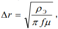 where f is the electromagnetic radiation frequency, is the magnetic permeability, and is the electrical conductivity of the solid.